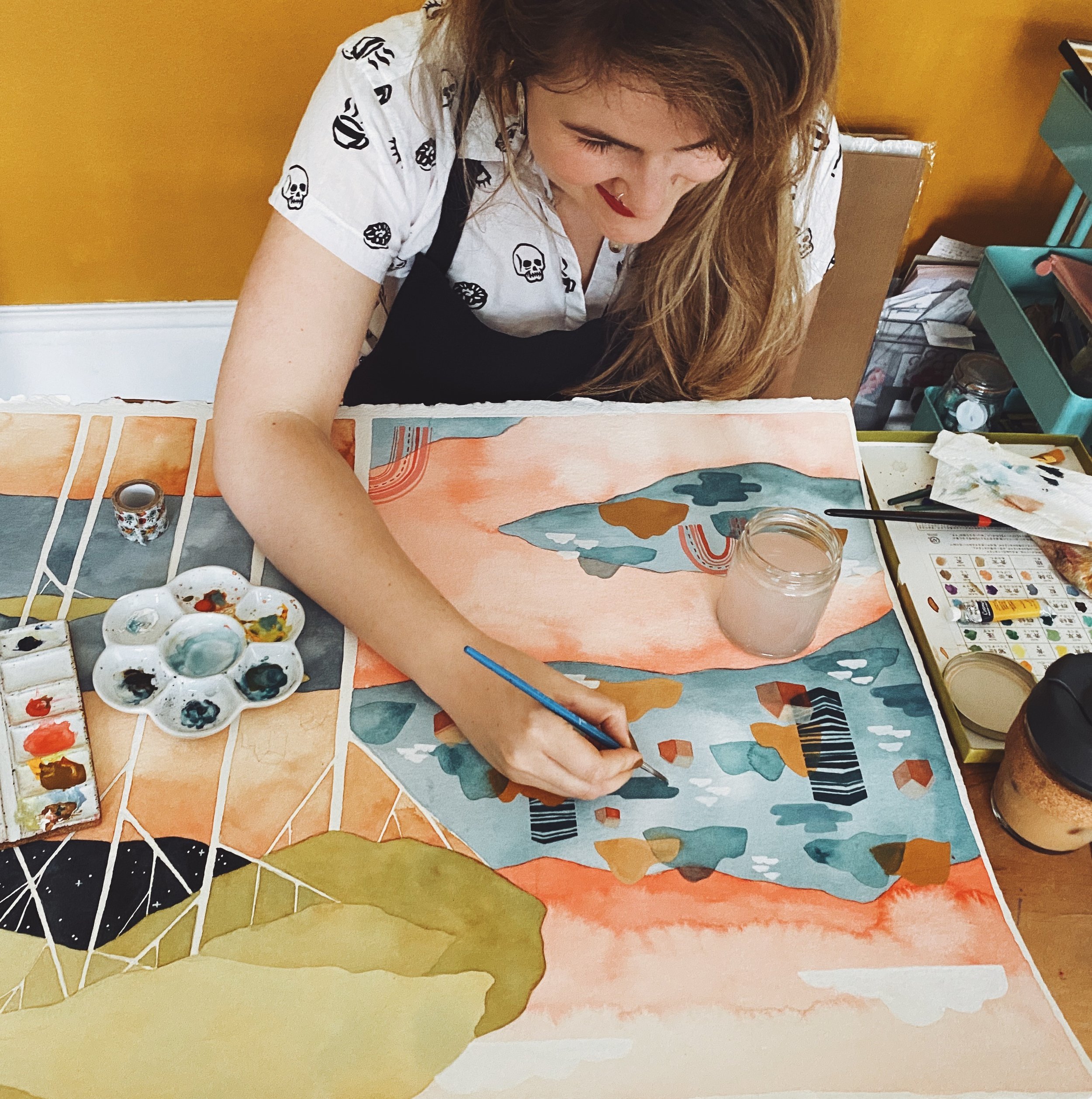 I am a freelance illustrator and designer living and working in Upstate New York with my husband, baby son, and two cats who are constantly at odds. I’m inspired by my experiences with mental health, the necessity of quiet moments, and our human tendency to connect with each other and nature even in an urban environment. My artwork celebrates whimsy, introspection, and the contrast of the structure of society and the entropy of nature.