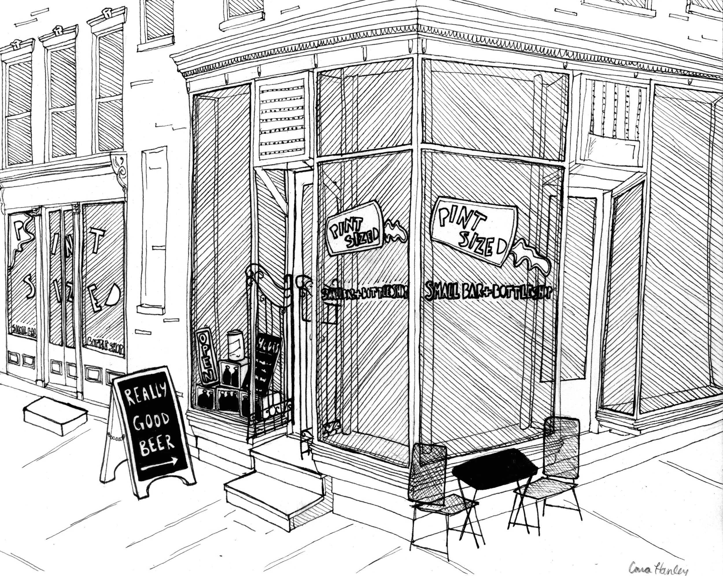 Line illustration for various merchandise for Pint Sized Bar + Bottle Shop. Artwork was also displayed as chalk murals in the bar. 2018.