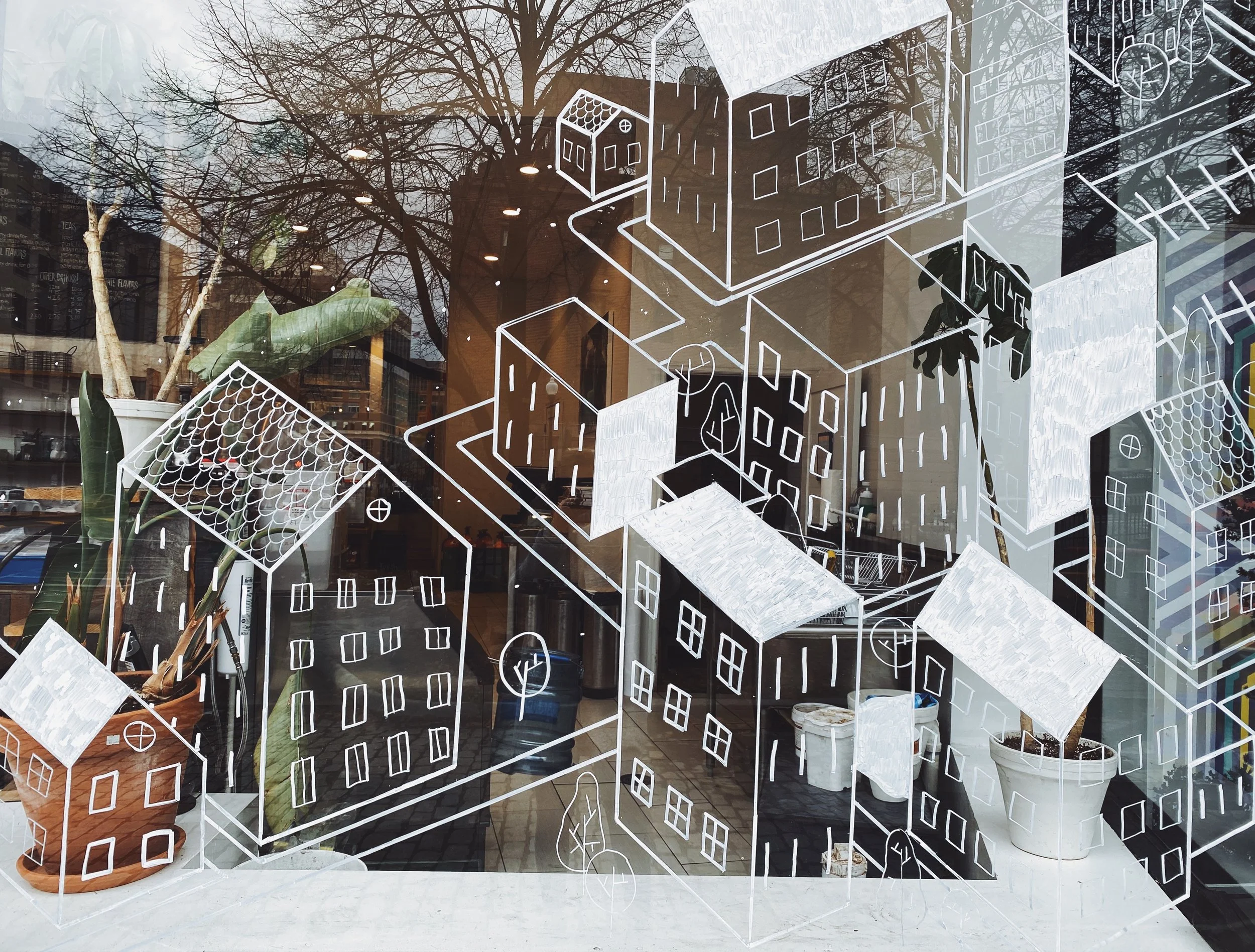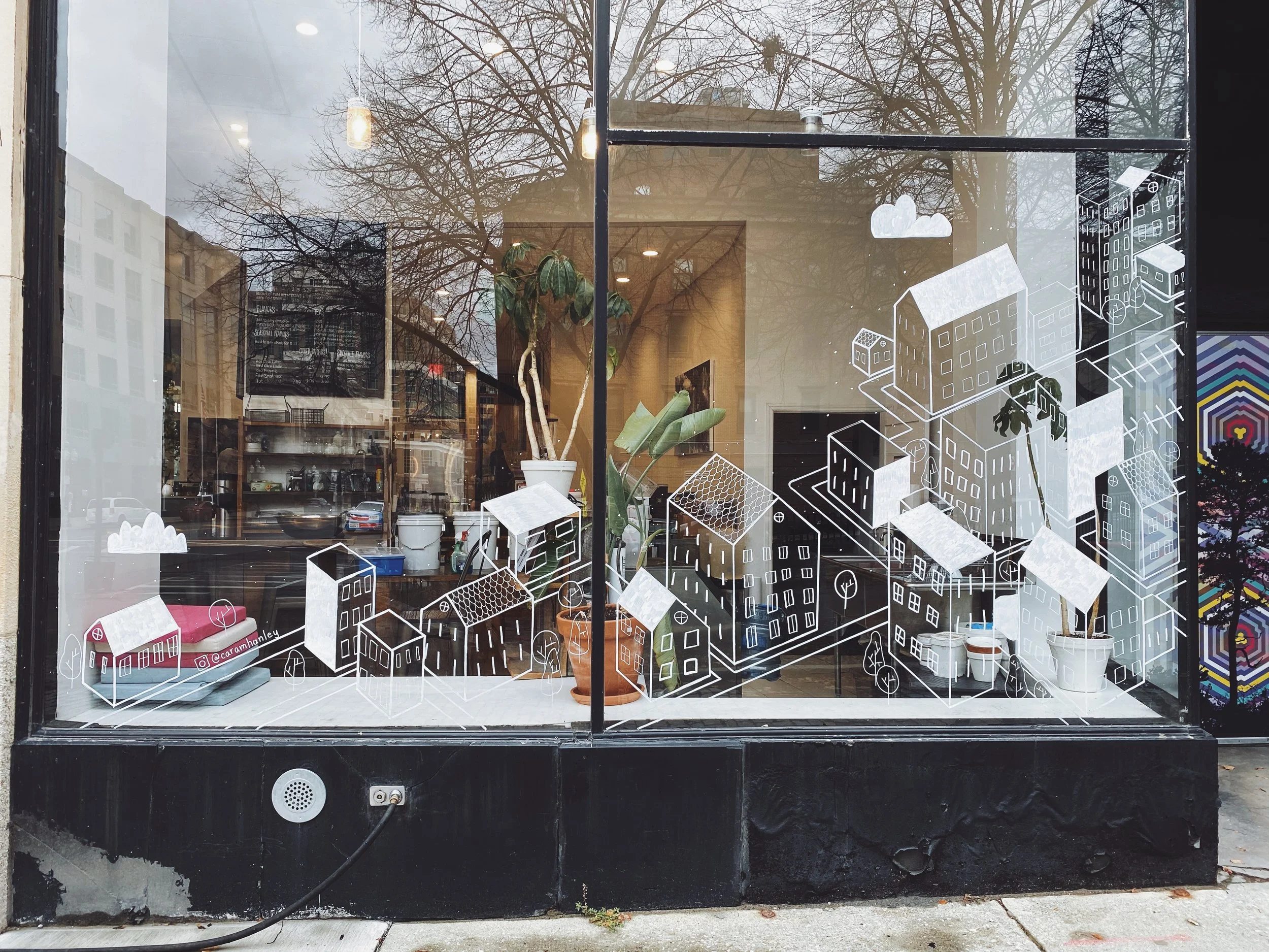 Designed and installed large-scale window illustration for Stacks Espress in downtown Albany, NY. 2020.