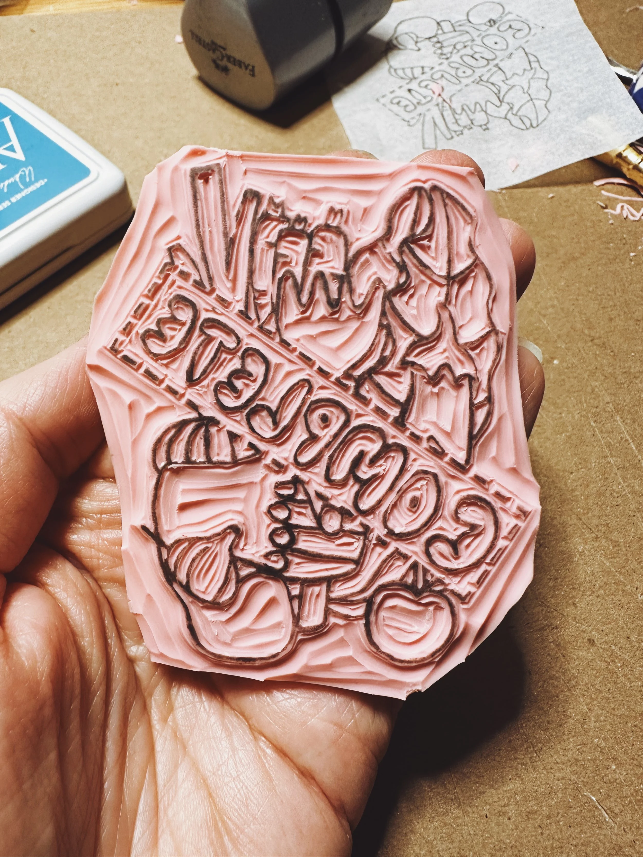 I developed this project to encourage individuals to try more fruits and vegetables and to engage with their farmers market community. I designed and formatted the passport, created all illustrations, and hand-carved 16 custom stamps featuring fun produce characters. I also created the illustration for the tote that was given to individuals who completed their passports.