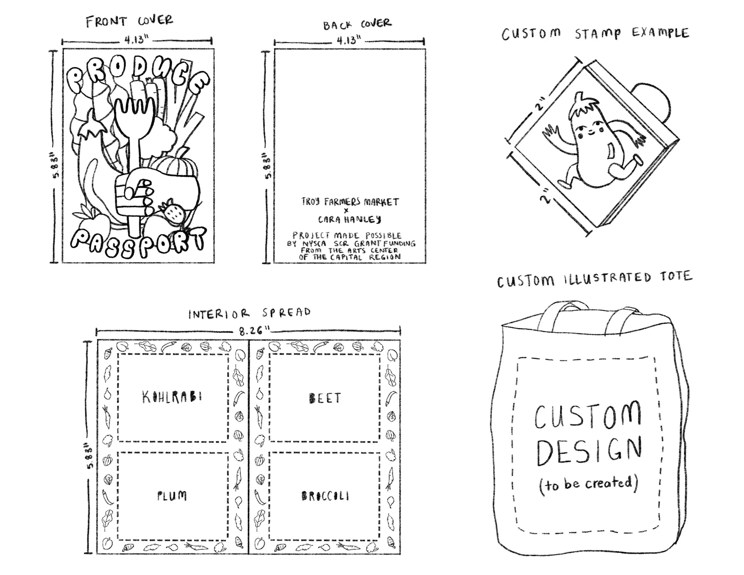 In 2023, I collaborated with the Troy Farmers Market to develop, illustrate, and design the “Produce Passport” project.